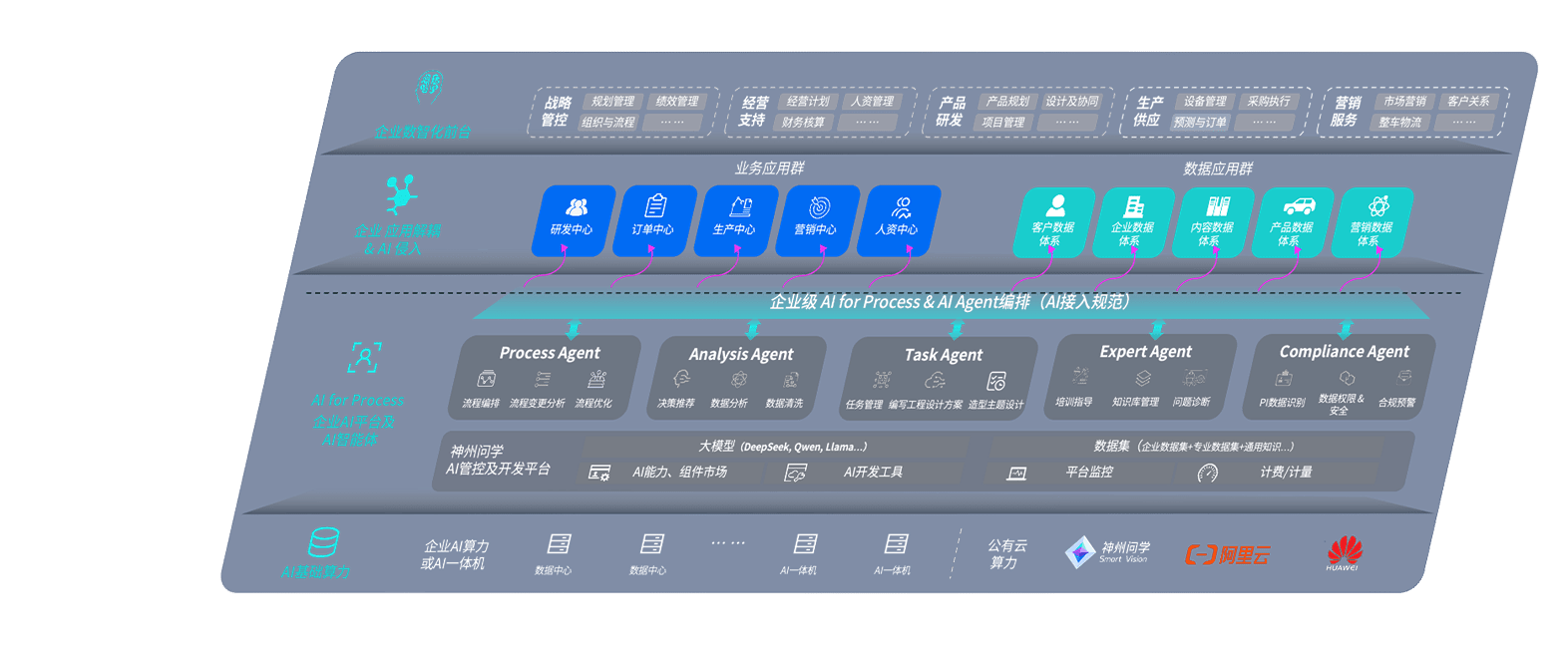 君临国际问学智车解决方案是一套基于AI技术的汽车行业智能化系统,,覆盖从底层算力到顶层AI应用的全栈方案。。。方案由算力层、、、模型层和应用层组成:算力层,,方案支持多种一体机配置,,,,具备云端灵活部署、、、多云适配以及动态优化计算资源的能力;模型层,,君临国际问学平台版提供了企业级AI应用一站式构建与管理平台,,,,支持基于后训练强化技术的汽车企业专属模型的训练、、、、评测和运营;应用层,,君临国际问学DeepSeek版提供包括超级员工、、、智能招采、、、、智能营销、、、、智能客服、、AI for BI等一系列解决方案,,,可助力汽车行业实现数字化转型,,,,让管理更智能、、响应更敏捷。。